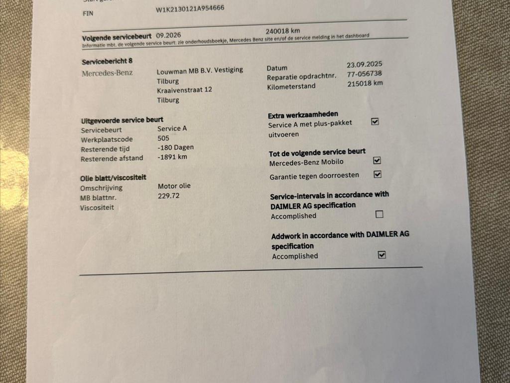 Origineel Nederlandse Mercedes E200d AMG Aut9 | Eerste eigenaar | Mercedes Dealer onderhouden 9/2025 beurt gehad | Panoramadak | Burmester soundsystem | Sfeerverlichting | Vollederen interier (comfort zetels met stoelverwarming) | Memory pakket | 360 camera | Verkeerslicht weergave via front camera | Cruise control + Lane departure met stuurcorrectie | Apple Carplay/ Android Auto | achterbank in delen neerklapbaar, alarm, aluminium delen exterieur, aluminium interieur afwerking, AMG-styling, Anti Blokkeer Systeem, Anti doorSlip Regeling, armsteun voor, audio installatie, Autonomous Emergency Braking, bandenspanningscontrolesysteem, bestuurdersairbag, Bluetooth, bots herkenning en activatie, bots waarschuwing systeem, Brake Assist System, buitenspiegels elektrisch verstel- en verwarmbaar, connected services, cruise control, DAB, dimlichten automatisch, draadloze telefoonlader, electronic climate control, elektrische ramen voor en achter, Elektronisch Stabiliteits Programma, elektronische remkrachtverdeling, extra getint glas achter, grootlichtassistent, hoofd airbag(s) achter, hoofd airbag(s) voor, keyless entry, keyless start, knie airbag(s), kunstlederen/stof bekleding, LED achterlichten, LED dagrijverlichting, LED koplampen, lendesteun(en) verstelbaar, lichtmetalen velgen, multimediavoorbereiding, navigatiesysteem full map, passagiersairbag, regensensor, rondomzicht camera, schakelpaddles, sfeerverlichting, sportstuur, spraakbediening, start/stop systeem, stuur leder, stuur multifunctioneel, verkeersbord detectie, verlaagde carrosserie, vermoeidheids herkenning, voorstoel(en) elektrisch verstelbaar, voorstoelen in hoogte verstelbaar, voorstoelen verwarmd, warmtewerend glas, WiFi, zij airbag(s) voor, Apple Carplay/Android Auto, audio installatie premium, elektrisch glazen panorama-dak, luxe lederen bekleding, rijstrooksensor met correctie, buitenspiegels elektr. met geheugen, buitenspiegels elektrisch inklapbaar, dodehoek detectie, elektrisch verstelb. bestuurdersstoel met geheugen, elektrisch verstelb. passagiersstoel met geheugen, matrix LED koplampen, parkeersensor voor en achter, stuurkolom elektrisch verstelbaar met geheugen, buitenspiegels elektr. met geheugen, elektrisch verstelbare stoel(en) met geheugen, stuurkolom elektrisch verstelbaar met geheugen, Etc, Prachtige uitermate goed verzorgde en onderhouden auto.